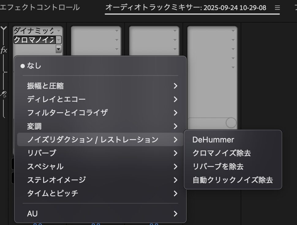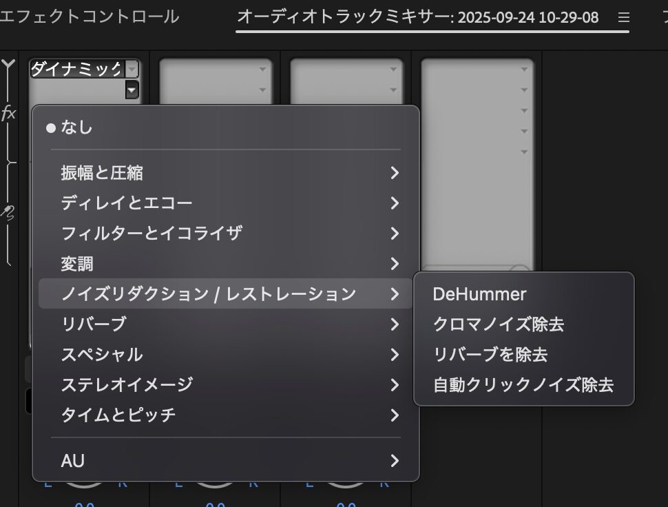 PremiereProで編集するとき、音についても毎回同じ設定の編集を入れています。