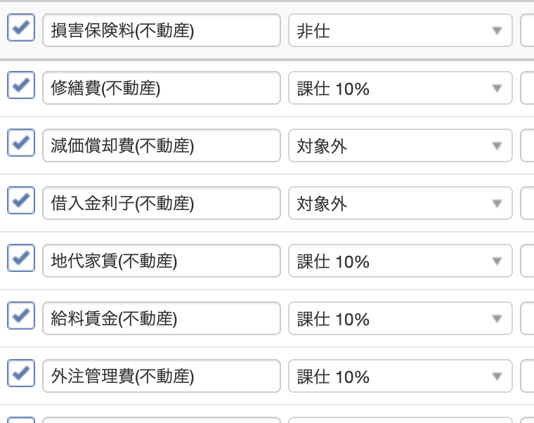 この設定をしておくと、経理の科目に「(不動産)」とついた勘定科目を使えるようになります。